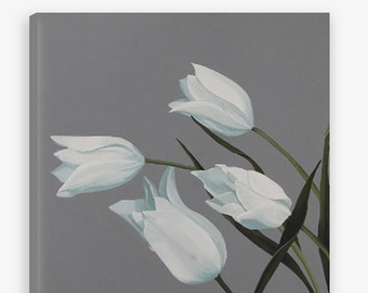 Canvas Print - Tulips White Green Large Decorative Modern Botanical Wall Art Print Limited Edition