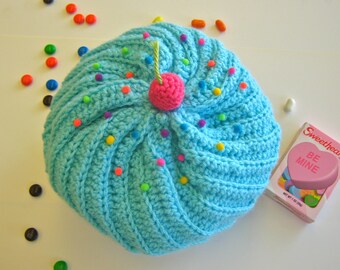 Cupcake Hat with Sprinkles in Chocolate and Cream Frosting - Made To Order
