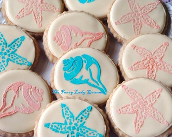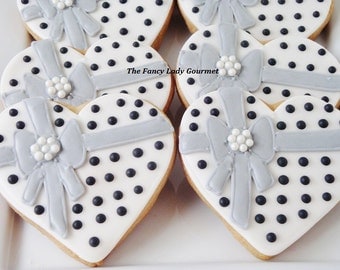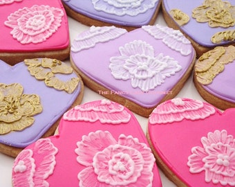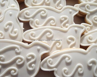 1 dozen of our gourmet shortbread cookies with an elegant damask design . They are decorated in vanilla royal icing and they can be customized in your own colors!