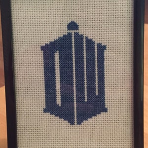 This pattern has the words "Tardis Sweet Tardis" next to the trusty Tardis herself.