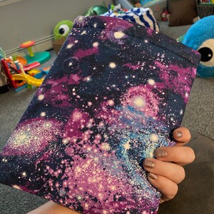 Large Sleeve Measures approx 8.5”x11" and is padded. It is perfect for those large hardbacks, paperbacks or your tablet.