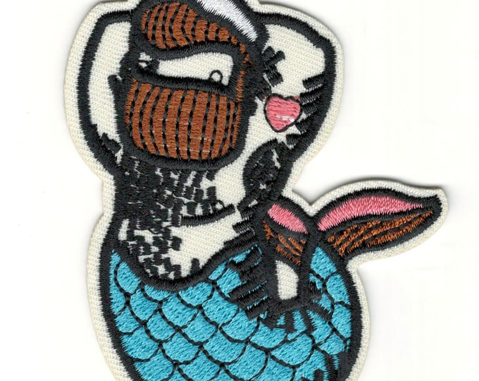 Sexy Hunk Merman Sailor with Beard Embroidered Tactical Patch - Sexy Hipster Merman Sailor Heart Tattoo Embroidery Patch - 1 per Order #B783