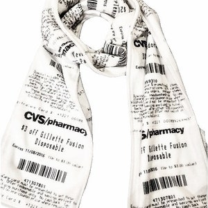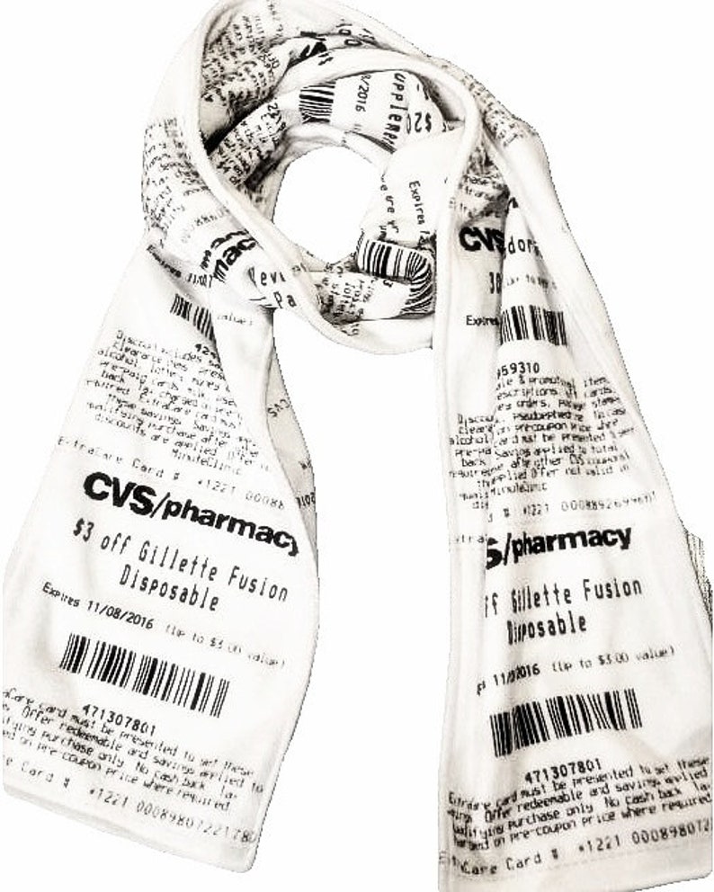 CVS Receipt Scarf, double-sided, soft fleece scarf for any season. Looks just like a real CVS receipt! Makes a great gift for him or her.