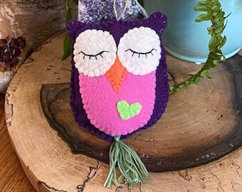 Purple owl pillow cover. Childrens fleece cushion for girls bedroom, 35cm / 14inch