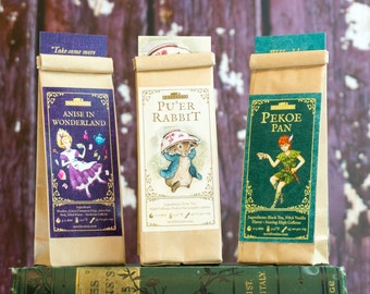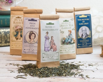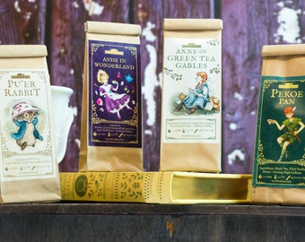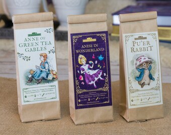 Sample three of our most popular literary blends: Anne of Green Tea Gables, Pride and Peppermint, and Pu'er Rabbit.