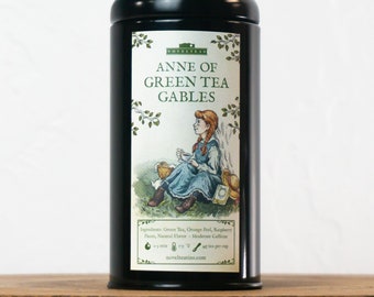 Anne of Green Tea Gables: Green Tea, Orange Peel, Raspberry Pieces, Natural Flavor. Moderate Caffeine
