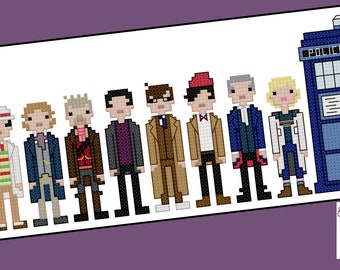Really more of a fan of the modern era Doctors? You can find our smaller pattern of just Doctors Nine, Ten, and Eleven here: http://www.etsy.com/listing/77305828/pixel-people-doctors-nine-ten-eleven-pdf?ref=af_shop_favitem