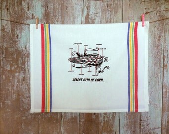 Are you or do you know a meat eater? A bbq loving, steak eating meat lover? Well this is the perfect gift for you or them! This butcher's diagram tea towel was lovingly hand screened by me on a 100% cotton plain woven tea towel. Each tea towel measures 18x28 inches with 4 colorful stripes on the long side. And there's even a convenient hanger loop too!