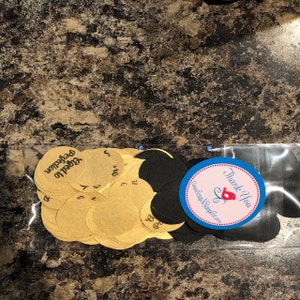 Your M&M's® never looked so sweet packaged in these treat bags! You'll receive a set of 12 1x8" resealable cello bags (measurement does not include flap), 12 1 1/8" circle hang tags and 12 5" silver cords long enough for you to tie tightly around the cello bag (not the treats) and trim if you like. The bags hold up to 23 Skittles® or 28 M&M's® but in these photos there are 25 M&M's®. Just fill your bags with candy, seal the top (there is lip seal) and tie your tag on. Sweet!!