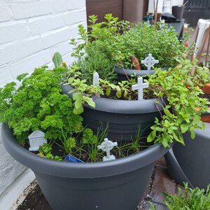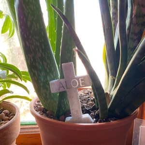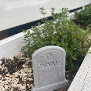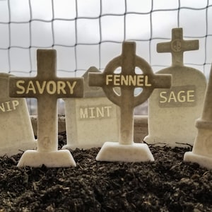 These herb garden markers are in the shape of grave stones and are 3D printed in a marble-like colour to more closely resemble the real thing. Each stone of the 6 shapes can be customized with any of the 40 herb names or you can personalize your own name. These are printed on demand so there is a little more lead time and cost, but you can make your indoor or outdoor garden completely unique!