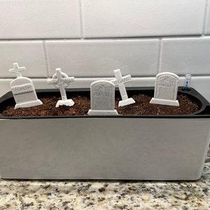Read the full title Custom Graveyard Garden Stake || Gothic Home Decor Goth Herb Garden Headstone Tombstone Grave Stone Cake Topper || Personalized 3D Print