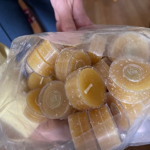 Tealight Beeswax Candles BULK 100% Natural Handcrafted USA / 6 / 12 / 25 / 50 / 75 / 100 / 200 / 300 Tea Lights Wedding Event Party / Honey