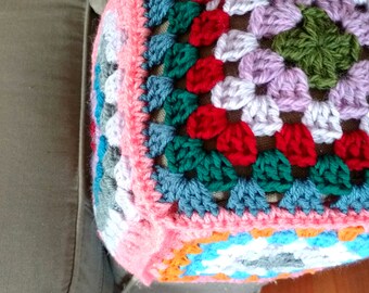 Extra colourful crochet armrest cover in "granny square" style! Need to protect your sofa's armrests from animal bites or scratches, or simply to cover holes, stains or prevent further damage? Then this funky decor idea might be just the right solution for you.