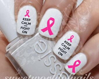 Breast Cancer Awareness Keep Calm and fight on Nail Art Nail Water Decals