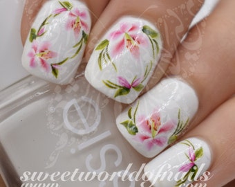 Nail Art Pink Flowers Nail Water Decals Transfers Wraps