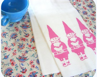 New white flour sack kitchen towel hand screenprinted with two grenades in a hand mixed ink, I call pink taffy. 100% Cotton and as absorbent as a paper towel.