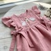 Monogrammed Linen Dress: Flutter Sleeve Ruffle Dress with Bow