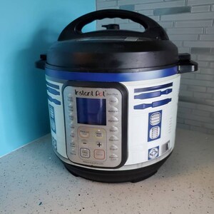 Blue and white droid wrap - Instant Pot wrap. Premium non-adhesive waterproof wrap by Instant Wraps. Robot Droids