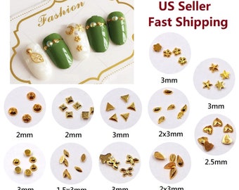 100pcs New 3D 11 Shapes Options Styles Gold Metallic Flat Back&Top Solid Stud DIY Nail Art Manicure Pedicure Jewelry Accessories Decoration