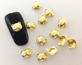 20pcs New 3D Nail Art Gold/Silver/Grey Cute Bear Metal Alloy Stud Charm Decorations