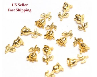 20pcs New 3D Metal Alloy Gold/Silver Flower Rose Buds/Blooming Nail Art Jewelry DIY Accessories Decoration Charms