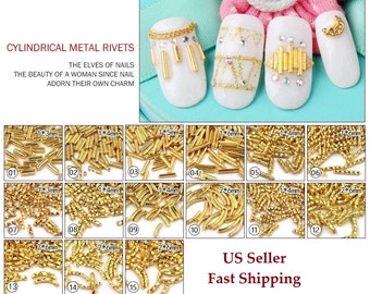 30pcs New 3D Nail Art Gold Rivet Alloy Metal Cylindri Studs Charm Decoration