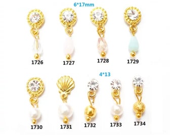 4pc New 3D Nail Art Gold Shell Pearls Crystal Rhinestones Dangles Pendants Nail Art Accessories Decoration