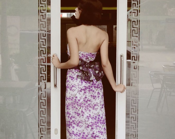 Cherry Blossom Dress Strapless Long Gown in White and Purple