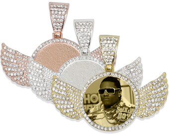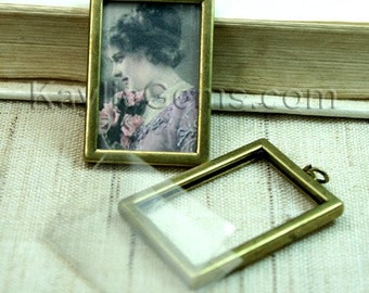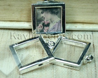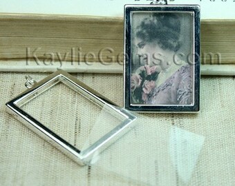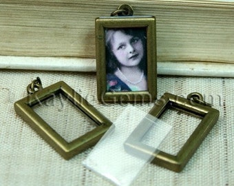 The picture frame pendant has an open slot on the top. It also comes with a folded clear plastic film. Just cut your favorite photo or vintage style collage sheet to fit the film size, insert into the film and then slide them into the frame through the slot. You can even add two photos back to back so each side of the pendant will be different .You can also insert the laminated picture directly (in this case, you do not need the film that comes with the frame).