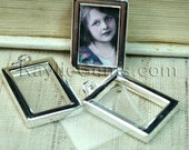 Picture Frame Charm Pendant Earring Drop Double Sided Rectangle 16x22mm - Silver Plated - 4 Sets