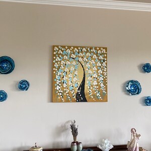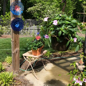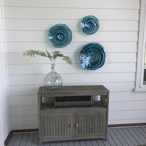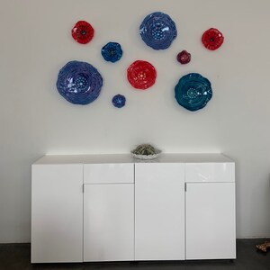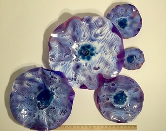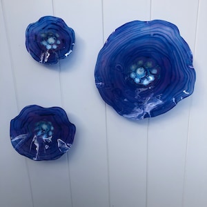 Dark Blue/ Eggplant Purple flowers wall art durable recycled plastic looks like glass indoor outdoor wall hanging boho wall decor