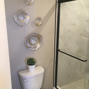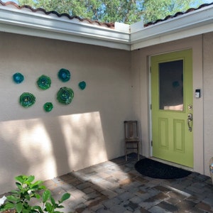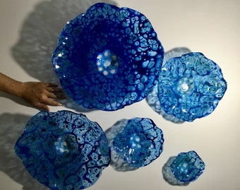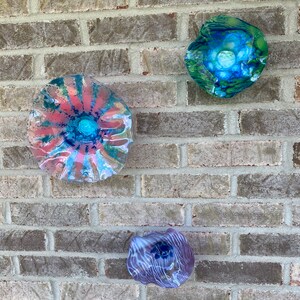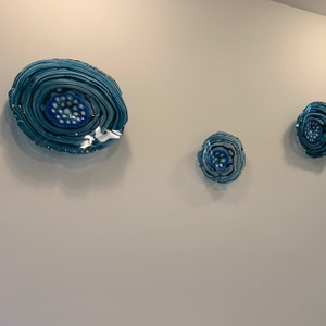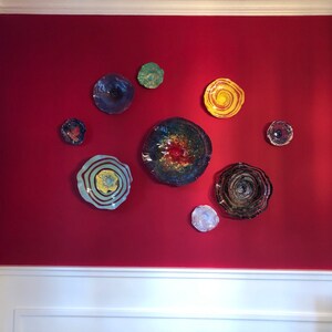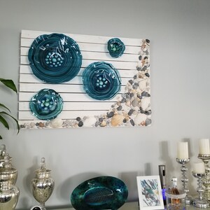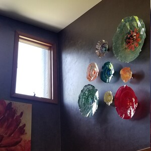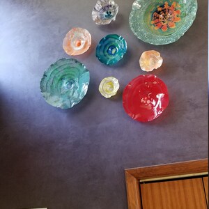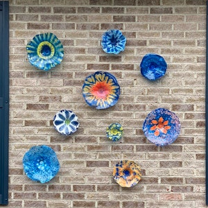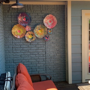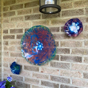 Each collectible piece is unique, no two are alike. This permanent, colorful, eye catching art looks and feels like glass. They shimmer in the light resembling water. They are very DURABLE AND LIGHTWEIGHT . Great for indoor or outdoor decorating.