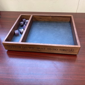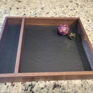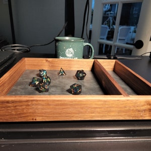 An absolute perfect dice tray for my D&D campaign. Exactly what I was looking for. It is so well made and looks so good it is very similar to my friend's very expensive tray. I also had a question about my order and Dan and Cara were so quick and helpful and I got the perfect tray.