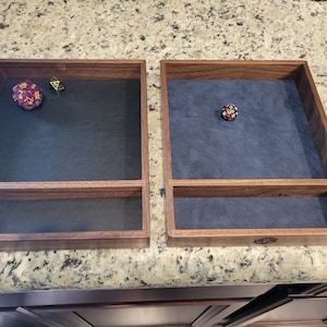 5 out of 5 starsGot my partner and I these dice trays and WE LOVE THEM SO MUCH! I can drop them from any height with no bounce, the craftsmanship of this trays is beyond beautiful, I will recommend this shop to anyone who needs a dice tray! This is my new baby as a Player & DM.