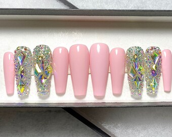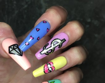 Made to order Nail Designs by Tanya press on bling nails with kit custom art hand painted long medium short coffin stiletto
