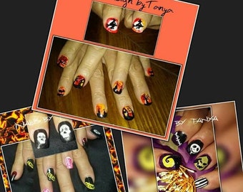 HALLOWEEN Made to order Nail Designs by Tanya reusable press on bling nails kit custom art hand painted long medium short coffin stiletto