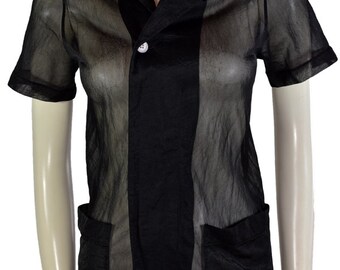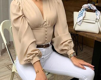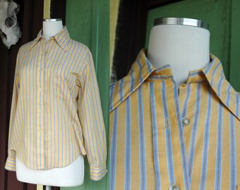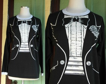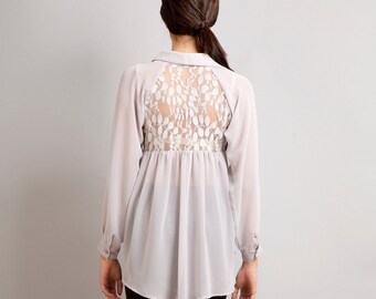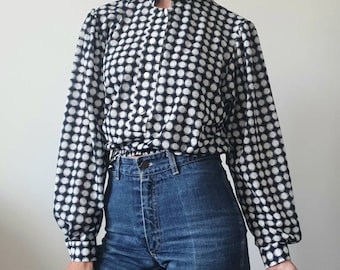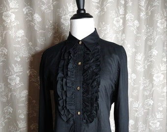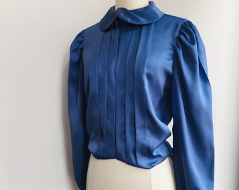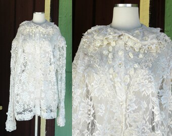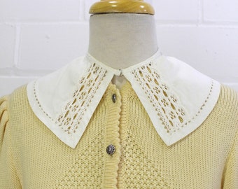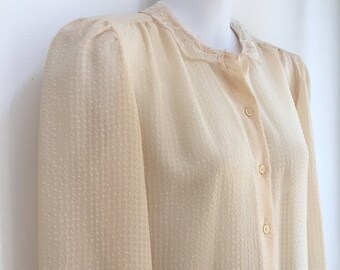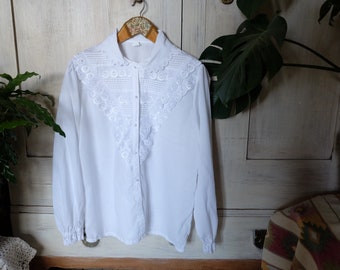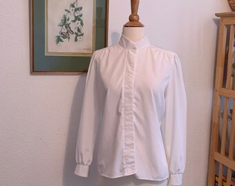 1980s White Blouse with Lace Trim Collar // 80s White Long Sleeve Blouse with Delicate Collar and Tuxedo Style Pleating
