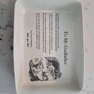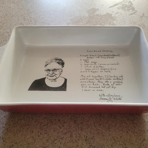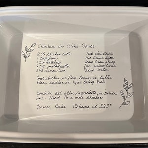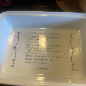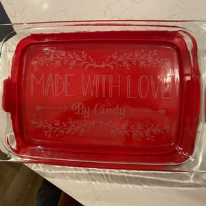 I purchased this as a wedding shower gift and had the bride and groom's names personalized on the bottom. I was looking for a 9x13 dish that came with a lid and this was exactly what I needed. Kim was great to work with. She responded quickly, was able to accommodate my tweaks to the custom artwork and shipped it out in a couple of days. The dish is so beautiful. I can't wait to give it to the happy couple. Thank you Kim!