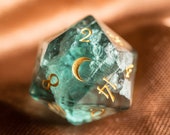 D20 Engraved Green Fluorite Gemstone D20 Dice - Dungeons and Dragons D20, RPG Game DND Moon Version