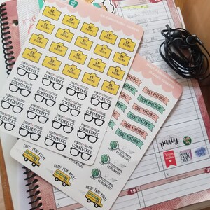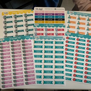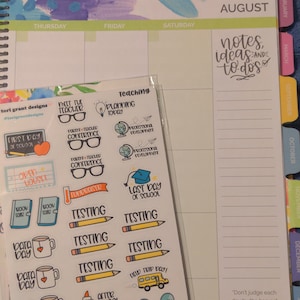 Stickers are designed to fit most planners. The sticker sheet size is 5 by 7 inches.