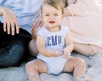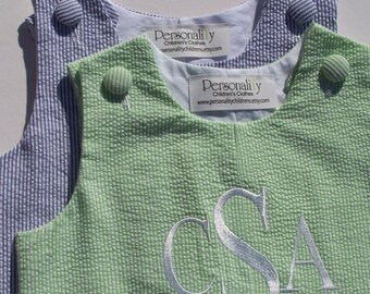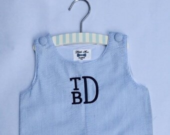 Nothing says Spring in the South like seersucker! This traditional blue and white jon jon is ready for Easter. Just send me the monogram that you need and I'll create your custom garment. In 1907, the first seersucker suit was designed and sold in New Orleans. The suits were marketed as summer suits and known for their wash-and-wear properties. The fabric is lightweight and cool against the skin.