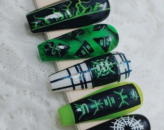 Witchy Halloween Hand Painted Gel Press On Nails/Fake Nails