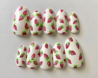 Strawberry Hand Painted Gel Press on Nails/Fake Nails