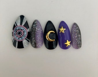 Sun and Moon Hand Painted Gel Press On Nails/Fake Nails