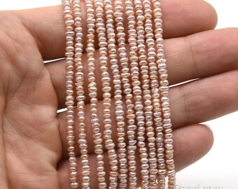 3-3.5mm fresh water pink button small pearl, genuine seed beads, cultured pearl strands, loose pearl beads, FS480-PS