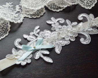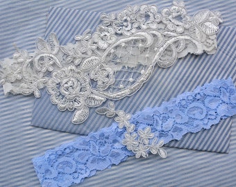 Wedding garter set, bridal garter set, lace garter, Bridal gift, Bridal lace garter, ivory silver lace garter, keepsake garter,