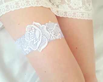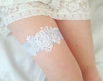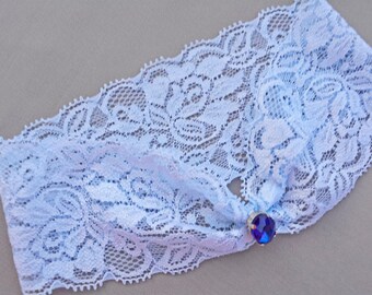 Blue garter, Bridal garter, Floral White garter, PALE POWDER BLUE Lace Garter, Something blue, Wedding garter