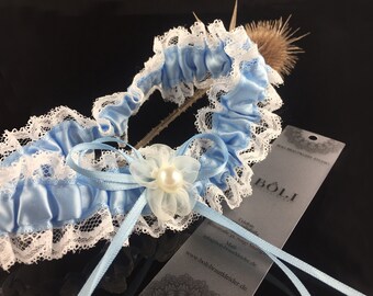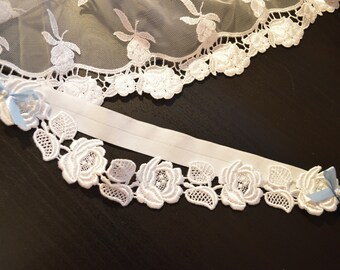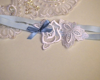 Garter, Blue garter, Bridal garter, Floral White Garter, Pale Powder Blue Lace Garter, Something Blue, Wedding Set Garter, Keepsake Garter