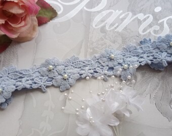 ON SALE....Garter, Wedding garter pale blue, ,Vintage guipure floral lace. Blue Bridal garter with pearls. Hen party