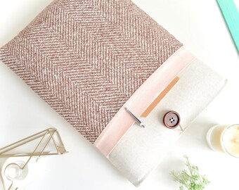 Herringbone + Pink iPad Sleeve, iPad Pro Case 11", 12.9" Cover, 9.7 6th Gen 2018 iPad Sleeve, iPad Mini Cover, Padded Handmade Tablet Pouch